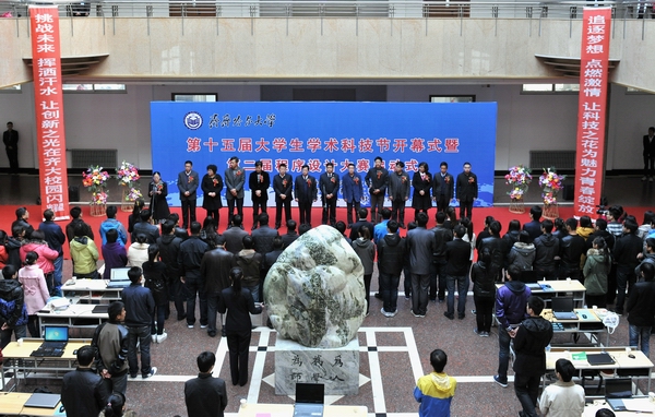 科技节组委会主任、校党委副书记盖元臣,科技节组委会主任、常务副校长郑喜群,团市委书记周长友,团市委学校部部长蔡鹏,科技节组委会副主任、学工处处长黄伟中,科技节组委会成员、校长助理、党校办主任尹鸥,宣传部部长田志峰,保卫处处长邵丙军,“挑战杯”大赛校内组委会成员单位负责人、科技处处长郑永杰,社科处处长王晓梅,研究生处处长、研究生学院院长沙伟,第二届程序设计大赛主办单位领导、计算机与控制工程学院党委书记周成、院长戴学丰出席仪式。本届科技节组委会成员、各学院副书记副院长,组委会办公室成员团委书记,各学院学生会主席、学科部部长及校院两级学生会主要学生干部、部分学生代表和第二届程序设计大赛全体参赛队员也参加了仪式。开幕式由科技节组委会副主任、校团委书记李秀梅主持。