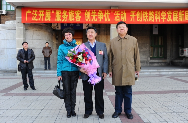 14日上午8时许,T47次列车徐徐开进了齐齐哈尔火车站。刚一下火车,马立群委员就被鲜花和掌声包围。迎接的领导、记者纷纷上前,与委员握手、攀谈,给委员摄像、拍照,热情迎接他的归来。