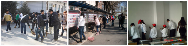 传承雷锋精神,做好志愿服务。化学与化学工程学院、音乐与舞蹈学院、理学院、外语学院、文学与历史文化学院、哲学与法学学院分别组织本学院青年志愿者参加了“清理校园死角,温情服务社区”等系列志愿者活动。活动中,同学们为校园和社区清理角落垃圾,清洗墙壁上的涂鸦,义务清扫离退休老干部活动室,给校园增添一抹新绿,为社区送去了温暖与真情。