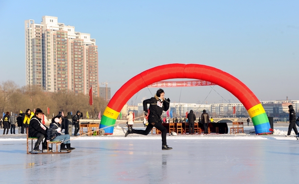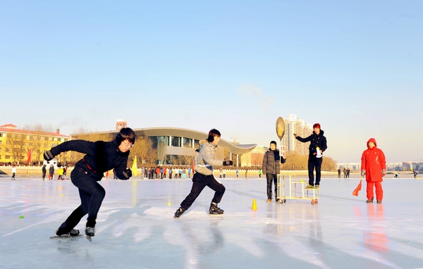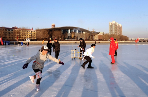 12月26日下午,齐齐哈尔市劳动湖冰场彩旗飞舞,人头攒动。在轰鸣的礼炮声中,欧冠第十一届冰上运动会拉开了帷幕。