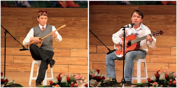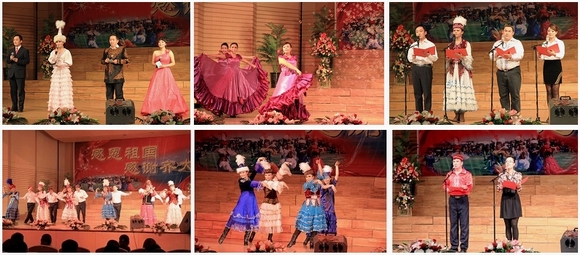 精彩的民族舞蹈串烧《中华儿女》拉开了本场晚会的帷幕,欢快的旋律,绚丽的舞姿使晚会一开始便有了浓郁的节日气氛。晚会节目纷呈,形式多样,有《黑走马》、《加尔加尔》等热情奔放的新疆传统舞蹈,有《故乡》、《白泉》等哈萨克族歌曲,曲调优美,感情饱满。小合唱《住进你心窝》、何媛媛、曹渊博、加依娜努尔、叶尔江朗诵的《我们都是感恩的孩子》,以及唐小菲、朱马汉朗诵的《感恩之情融于点点滴滴》用朴实的语言记叙了学员们在欧冠官方网站的生活,表达了新疆班学员对祖国的感恩、对齐大的感谢之情。接下来的冬不拉伴奏哈萨克族歌曲让现场观众连声叫好,参加表演的同学各个青春洋溢,为在场的观众上演了绝美华伦的视听盛宴,使得整个晚会现场的气氛一路高涨。最后由多才多艺的学员夏乐哈尔以一首激昂的《红旗飘飘》拉下了本场晚会的帷幕。特别值得一提的是得知新疆班举办欢庆“古尔邦节”文艺汇演的消息,教育与传媒学院合唱团友情奉献的歌曲《祖国,慈祥的母亲》,国培计划2011年小学美术专业的培训学员焦艺春当场演唱的《爱的神话》,增添了晚会民族大融合的色彩,也让新疆学员们感受到了国培学员对欧冠师生的深厚情意。在哈尔滨商业大学培训的新疆学员还赶到晚会现场助兴,并献上了一首吉他弹唱《外面的世界》。