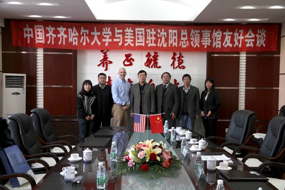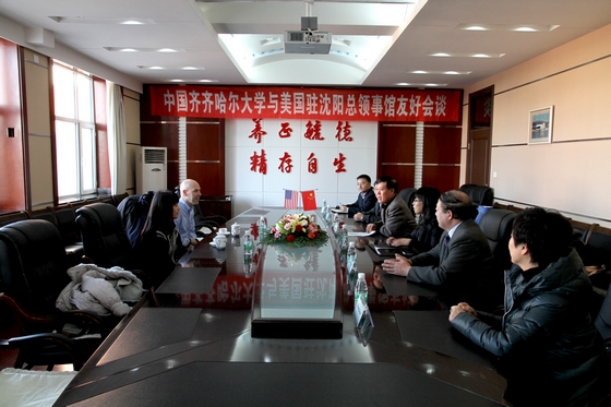 11月18日,美国驻沈阳总领事馆文化领事贝立明、文化助理于珕等一行来访欧冠。在欧冠外事处等有关部门领导陪同下,贝立明一行参观了欧冠体育馆、音乐厅、网络多媒体中心等有关教育教学场馆与设施。