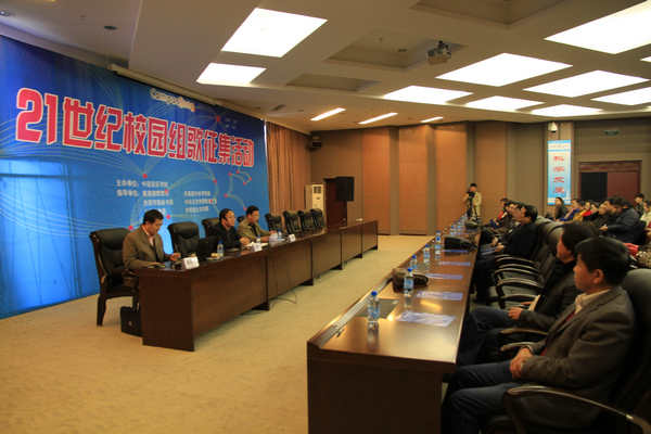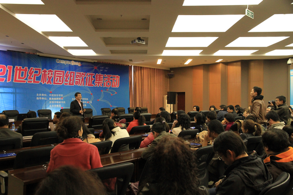 “21世纪校园组歌征集活动系列讲座”活动由中国音乐学院主办,以教育部思政司、共青团中央学校部、全国学联秘书处、中共北京教育工委、北京市教委、共青团北京市委为指导单位,在北京市委教育工委的领导下,全国部分高校党委书记、团委书记、学生会主席、部分作曲教授、声乐教授担任组委会成员,以“搭建高校交流之桥、助力校园歌曲发展”为目的,力争在“推广活动主题宗旨、深化高校音乐互动、挖掘原创新生力量、征集优秀校园歌曲”等方面取得较大进展。