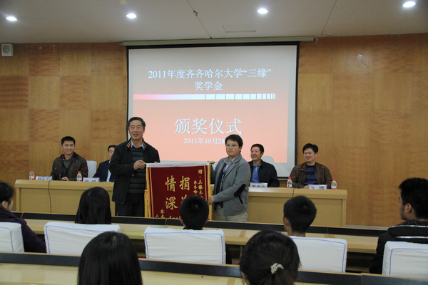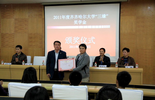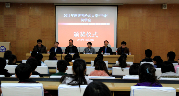2011年10月28日下午,2011年度欧冠官方网站“三缘”奖学金颁奖仪式在西主七楼学术报告厅隆重举行。
