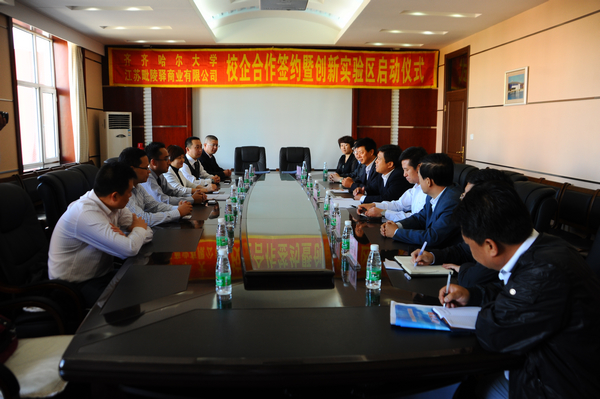 副校长郑喜群与江苏毗陵驿商业有限公司总经理汤亚伟各自介绍了校企双方的发展概况,阐明了校企合作的重要意义及有关事宜,并代表校企双方签署合作协议。