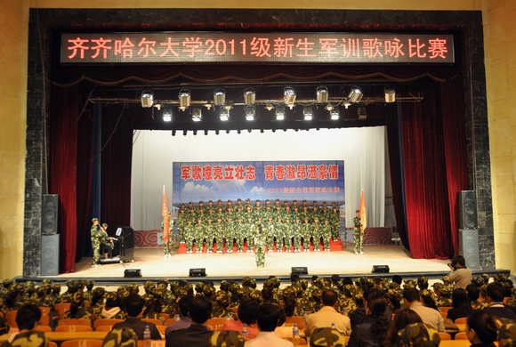 军歌嘹亮立壮志,青春激昂洒豪情。为全面贯彻党的教育方针,不断增强学生热爱国防、热爱祖国、刻苦学习、立志成才的责任感和使命感,根据欧冠《2011级学生军事训练工作实施方案》的总体部署,欧冠2011级新生军训歌咏比赛于9月14日上午在中区文化宫隆重举行。共有来自全校19个营的24支参赛连队参加。