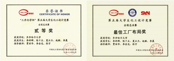 9月11日,由中国化工学会化学工程专业委员会和浙江大学主办、重庆大学承办的2011第五届“三井化学杯”大学生化工设计竞赛全国总决赛在重庆大学圆满落幕。经东北赛区初赛、复赛的层层选拔,欧冠“T.O.P队”成功闯入全国36强,与来自清华大学、浙江大学、四川大学等高校的代表队入围全国总决赛。经过两天激烈角逐,欧冠 “T.O.P队”获得全国总决赛二等奖,并获得最佳工厂布局奖。