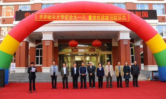 她说,我们不忘九一八,是因为我们不会忘记国耻留给中华民族难以磨灭的伤痛;我们铭记江桥抗战的历史,是因为建设和发展强大的国家更需要伟大的民族精神。今天,你们重走抗战路,又一次在打响中国抗战第一枪的地方感悟先辈们为民族独立而英勇抗争的历史,再一次接受爱国主义和民族气节的思想洗礼,这是当代青年实践社会主义核心价值的壮举。她希望参加“重走抗战路”主题活动的师生,继承先烈遗志,发扬革命传统,勇于克服困难,自觉接受挑战,以实际行动展示齐大学子百折不回、勇往直前的精神风貌和当代大学生勇担时代重任、立志报效祖国的时代风采。预祝此次活动取得圆满成功!祝师生们胜利凯旋!