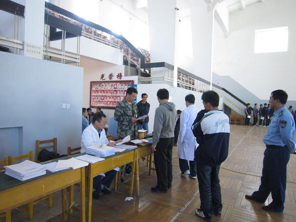 2011年9月20日(周二)下午,学生指导中心在二楼多媒体教室召开现场说明讲解会,发放报名表,现场咨询答疑。报考大学生飞行员的学生于9月21日(周三)下午将报名表提交至学生指导中心进行审核和统计。9月22日早晨,学生指导中心老师组织报名学生在学生指导中心一楼统一集合,由学生指导中心副主任吴刚带队到齐齐哈尔市第一中学参加初检。