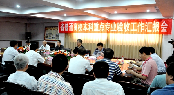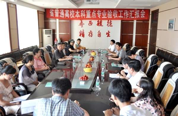 副校长郑喜群代表学校作了省级重点专业建设工作汇报。他从重点专业建设的指导思想、基本原则、重点专业建设与管理、主要措施、取得的主要成绩、建设经费投入、存在的主要问题及今后努力方向等6个方面对欧冠省级重点专业建设的总体情况进行了全面报告。