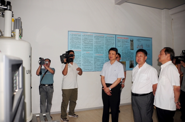 陈宗兴副主席一行从中区主楼广场出发,先后视察了学校图书馆、分析测试中心、西区教学主楼、体育场馆、德润大厦、游泳馆、音乐厅等学校教学场馆中心。视察中,马立群校长向陈宗兴副主席介绍了学校的发展历程以及充分挖掘场馆中心服务教学、服务社会的潜能,提升大学社会影响力的基本做法和经验,介绍学校未来发展蓝图。美丽的环湖大学,高水平的软硬件设施给陈宗兴副主席留下了深刻印象。