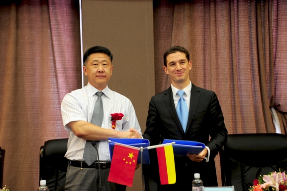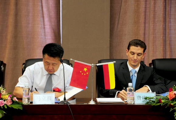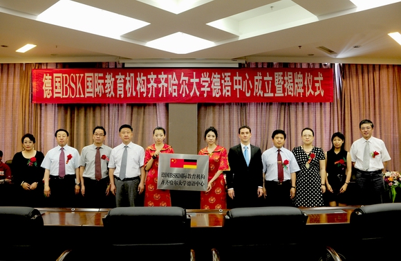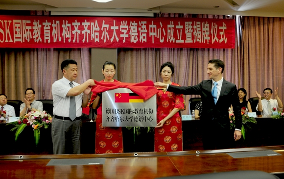 校长马立群与费费康安签署了《中国欧冠官方网站与德国BSK国际教育机构关于建立德语中心的协议》、《中国欧冠官方网站与德国BSK国际教育机构关于建立德语中心的师资委托代培协议》,并共同为“德国BSK国际教育机构--欧冠官方网站德语中心”揭牌。