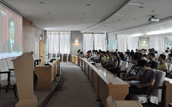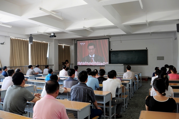 校团委组织团学干部在西区主楼7楼学术报告厅通过网络多媒体投影收听收看了庆祝大会现场直播和胡锦涛书记在大会上的重要讲话。