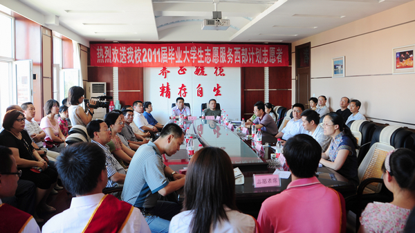 学子志愿赴西部,师友欢送母校情。2011年7月1日,恰值中国共产党成立90周年的喜庆日子,欧冠15名“2011届毕业生大学生西部计划志愿者”即将背起行囊奔赴新疆生产建设兵团、新疆维吾尔自治区、内蒙古自治区和黑龙江省的基层一线开展志愿服务。学校在中区504会议室为“2011届毕业大学生西部计划志愿者”举行了隆重而热烈的欢送仪式,为他们壮行。校党委书记李海红,校党委副书记盖元臣出席欢送仪式并寄语大学生志愿者。