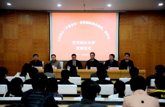 4月9日上午10:00,江苏昆山“中国金谷·花桥国际商务城”奖、助学金发放仪式在欧冠西区学术报告厅举行。欧冠副校长姜守训、江苏昆山花桥经济开发区组织人事局副局长李欣、花桥国际商务城人力资源有限公司总经理助理王有军、欧冠学生指导中心主任李迎春、计算机与控制工程学院党委书记于学江、通信与电子工程学院党委书记周成出席颁奖仪式。