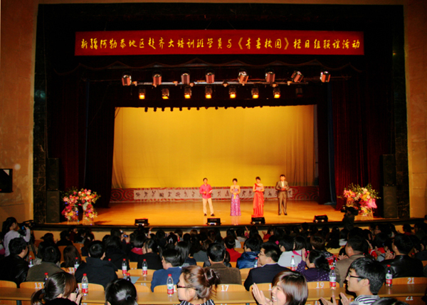 在“世界读书日”和“五四青年节”来临之际,新疆阿勒泰地区欧冠官方网站培训班学员与教育与传媒学院《青春校园》栏目组同学于4月22日下午在中区文化宫举行联欢会,校党委书记李海红观看联欢演出并同师生合影留念。