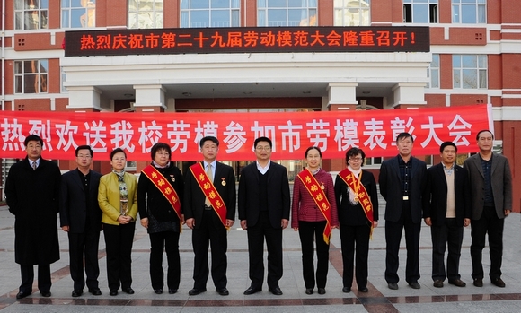 参会之前,欧冠在中区主楼前广场举行了欢送仪式,学校领导李海红、马立群、王凤琴、盖元臣、郑喜群、王刚、吕晓辉及有关部门和学院领导向荣获“齐齐哈尔市第二十九届劳动模范”和“五一劳动奖章获得者”表示热烈祝贺并欢送他们入场。