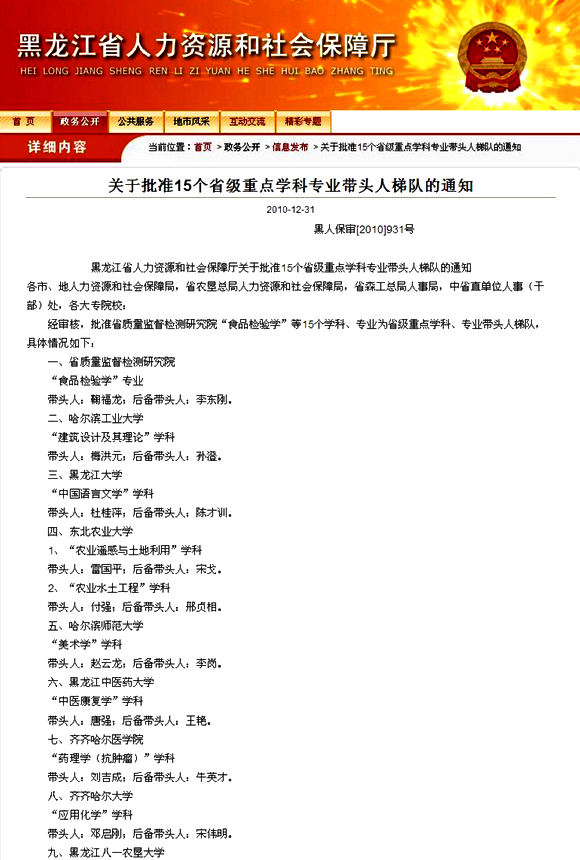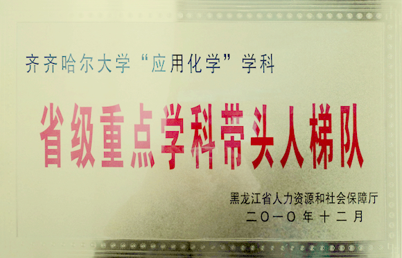 根据《黑龙江省人力资源和社会保障厅关于批准15个省级重点学科专业带头人梯队的通知》(黑人保审[2010]931号),欧冠以副校长邓启刚教授为学科带头人的省级重点学科“应用化学”学科梯队被批准为省级重点学科带头人梯队。这是欧冠获得的首个省级重点学科带头人梯队。
