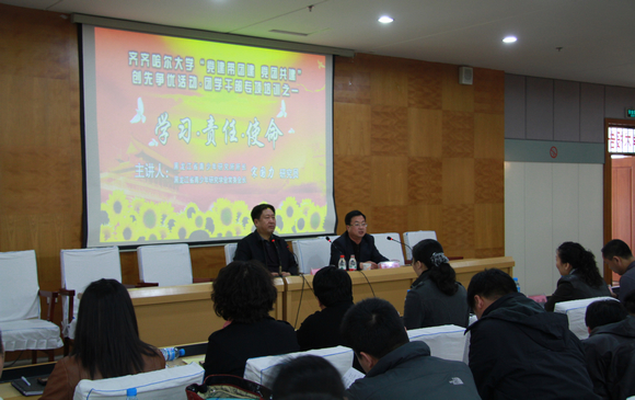 校党委组织部副部长、组织员办主任齐宏伟,校团委书记李秀梅、团委副书记赵振华及校团委全体工作人员、各学院团委书记和校学生会、校特色理论体系研究会、校青年志愿者协会、社团联合会、齐大青年报社等校级级学生组织及各学院学生组织代表200余人聆听了此次专题讲座。