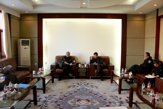 考察结束后,检查组在欧冠德润大厦会议室主持会议,对考察情况进行了现场反馈。检查组对欧冠安全工作给予高度评价和积极认可。会上还就有关问题深入交流了意见和看法。(摄影:李建明)
