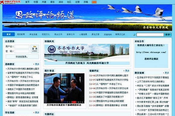 “中国大学生在线”网站是由国家教育部主导并推动,全国大学生参与,全国高校依照“共创、共建、共管、共用、共享”的原则,以“栏目共建、信息交互、活动联办、服务共享”的方式合作共建的公益性、综合性中国大学生门户网站;是一个展示中国大学生时代风采的新窗口、服务中国大学生成长成才的新平台、提升中国大学生综合素质的新空间、引领中国大学生舆论方向的新坐标。该网站以“弘扬健康文化、服务大学生活、塑造大学生人格、引导大学生成才”为主题,贴近生活、贴近学生、贴近实际,提供和完善各项有益于大学生的网络服务,满足大学生日益增长的成长成才需求,使网站成为全国大学生喜爱的网上精神家园。欧冠学生工作部主办的“思政评论”频道连续四年被教育部“中国大学生在线”分别授予“杰出贡献奖”和“十佳共建频道”荣誉称号;共建栏目“辅导员之家”曾获全国“十佳思政类网站”称号。
