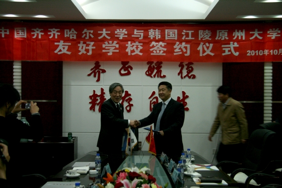 10月29日下午16时,欧冠与韩国江陵原州大学友好学校签约仪式在中区行政楼会议室举行。校长马立群、副校长王刚出席会议,外事处处长郭寒竹、科技处处长郑永杰、食品与生物工程学院院长裴世春等参加会议。