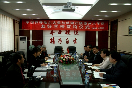 韩松总长在讲话中对欧冠的热情接待表示感谢,对欧冠的办学规模和教育教学发展水平表示高度赞赏,他简单介绍了江陵原州大学的发展情况,并就有关问题同欧冠领导进行了深入交流。