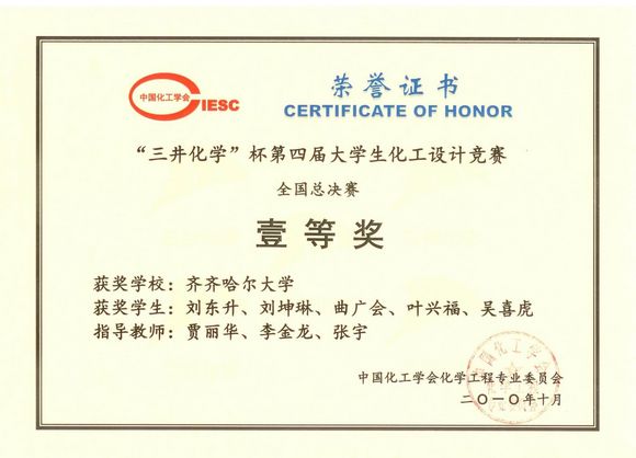 2010 “三井化学”杯第四届化工设计大赛是由中国化工学会主办、三井化学公司赞助、中南大学承办的大学生技能比赛中的一项重要赛事。竞赛的题目是为一座现有的燃煤电厂设计一套燃后CCS&U子系统,要求学生从反应机理、工艺流程、设备选择、工厂布局、经济效益等诸多方面做出全面的分析与设计。通过对化工企业工程项目的整体设计,考察工科学生工程实践能力、工艺设计理念和创新思维能力,培养学生的团队协作精神,促进专业之间、学校之间的交流与合作,是充分展示高校科研、教学能力和综合实力的重要平台,是社会选拔科技创新人才的重要窗口。