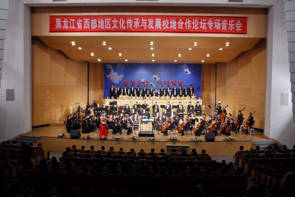 学校交响乐团为来校参加论坛的的省委宣传部、省委高校工委、省教育厅有关领导、齐齐哈尔市、大庆市、黑河市、绥化市、大兴安岭地区等黑龙江省西部地区五地市宣传部领导、十三所高校专家学者代表、企业界代表、新闻媒体记者、欧冠师生代表等1200余人再次奏响气势宏大的钢琴协奏曲《黄河》第四乐章、《红旗颂》等经典曲目。这是欧冠弘扬高雅艺术、传播先进文化的缩影。
