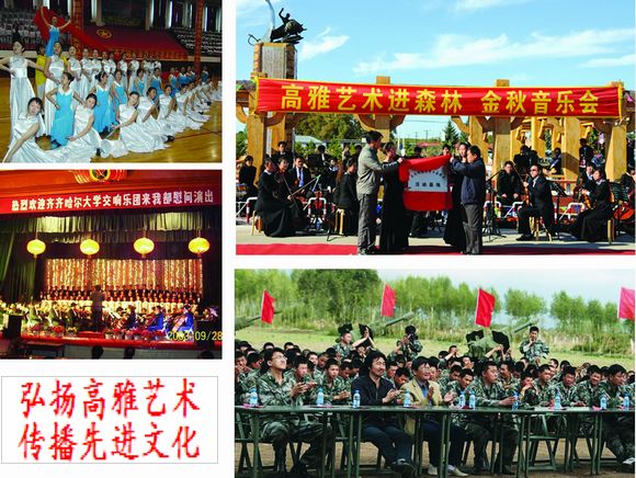 多年来,欧冠发挥交响乐团、师生合唱团等专业艺术团队的资源优势,去工厂、部队、企业还是农村,以“文化惠民工程”促进社会和谐,参加教育部高雅艺术进校园、绿博会、关东文化节、和平节、齐齐哈尔新年音乐会等演出180余场,承担群众文化展演任务300余场次,在弘扬高雅艺术中蜚声艺苑,香飘校园,辐射社会,成为欧冠文化校园的响亮品牌;举办5次中韩美术文化交流活动和两届中国亚麻服饰设计大赛暨国际现代设计专家论坛,主持设计了马恒昌主题公园、江桥抗战纪念馆中的“战迹沙盘”和“纪念壁画”,发挥音乐厅、美术馆、文化宫、体育馆等群众文化硬件资源优势,共承担群众文化展演任务300余场次,提升了本地区群众文化层次,树立了城市文化品牌形象,每一场演出都让现场的观众听者动容,大有“既去而余音绕梁,三日不绝”之感。学校真诚邀请了莫斯科柴可夫斯基音乐学院“泰斗级”人物、世界著名指挥大师波里斯?杰夫林教授、中国交响乐团联盟主席、中国音乐家协会交响乐爱好者学会副会长、中国电影音乐学会特约理事、国家一级指挥卞祖善、全国著名钢琴大师刘诗昆等大师,开展了广泛的高雅文化交流活动。充分发挥交响乐团、师生合唱团等专业艺术团队的群众文化软件资源优势,活跃丰富演出市场,在教育部高雅艺术进校园巡回演出、全国第四届特奥会、中国?哈尔滨第29届哈尔滨之夏音乐会、龙沙音乐会、劳动湖之夏音乐会、一年一度的绿色博览会、连续多年的齐齐哈尔新年音乐会、关东文化旅游节、赴黑龙江省农垦总局九三分局进行慰问演出、华安集团有限公司、大庆石化总厂、举办慰问驻齐部队官兵专场音乐会专场等演出达180余场。产生强烈反响,赢得了省教育厅的特别嘉奖。发挥音乐厅、文化宫、体育馆等群众文化硬件资源优势,共承担群众文化演出任务260余场次。经教育部审批,在2006年的“高雅艺术进校园”活动中,欧冠交响乐团将在我省各高校做巡回演出。黑龙江日报2006年6月11日在第一版以《高雅艺术打造一流名校 欧冠官方网站交响乐团发展启示录》为题做了专门的报道。
