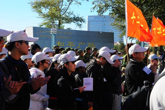 旌旗猎猎,激情飞扬。本次活动意在缅怀抗战英烈、勿忘国耻、激发豪情,为中华民族伟大复兴蓄积精神动力。150余名师生代表从和平广场出发,“重走抗战路”,重温历史,缅怀英烈,并以此来表达青年学子爱党、爱祖国、爱社会主义的炽烈情感和当代青年对维护世界和平、促进人类发展的坚定信念。