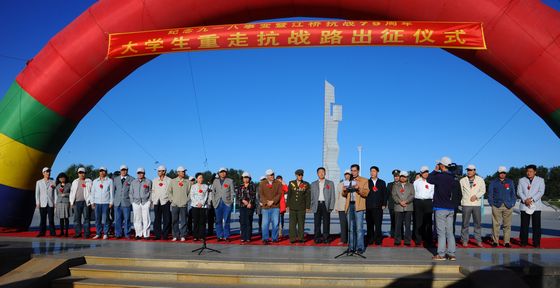 仪式最后,欧冠校长马立群宣布“大学生重走抗战路队伍启程”。随着欧冠校长马立群发出“启程”的号令,参加此次“重走抗战路”活动的全体师生踏上了征程。