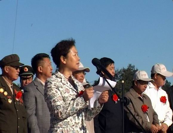 她说,历史无言,精神永存;穿越时空,辉映未来。79年前,救民族于存亡的历史任务已由我们的先辈完成。今天,开创中华民族伟大复兴的需要当代青年勇敢担当!她强调,今天,追寻,是为了永恒的纪念;铭记,是为了更好地前行。她希望参加“重走抗战路”主题活动的师生,不仅要在短短的三天内徒步完成150华里的路程,还将以最为直接、极富挑战性的方式去追忆尘封的历史印迹,以多维的视角去考量齐齐哈尔这座英雄城市的厚重底蕴,以满怀激情融入第二故乡经济文化腾飞的时代潮流。希望全体师生秉承革命传统,发扬长征精神,勇于克服困难,自觉接受挑战,以实际行动展示当代大学生百折不回、奋勇向前的时代风采。最后,她预祝此次活动取得圆满成功!祝师生们胜利凯旋!
