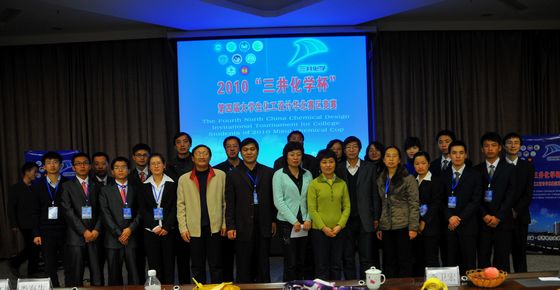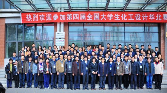 欧冠副校长郑喜群等校、处(院)领导与“三井化学杯” 第四届大学生化工设计竞赛(华北赛区)参赛师生合影留念。
