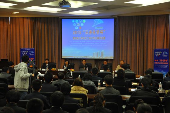 此项赛事迄今举办四届。2009年欧冠首次参赛,就取得了全国第11名并获三等奖的优异成。欧冠此次承办,是我省首次承办这项赛事的高校。经过初评,共有来自青岛科技大学、哈尔滨工程大学、吉林化工学院等8所院校的16支队伍(其中两个代表队自动弃权)进入华北赛区决赛。各参赛在现场提交书面文档并进行PPT展示、口头报告和现场答辩,由专家评委从中选出优秀作品入围全国比赛。大连理工大学化工学院副院长潘艳秋教授与欧冠材料科学与工程学院副院长杨长龙教授分别主持大赛答辩会。