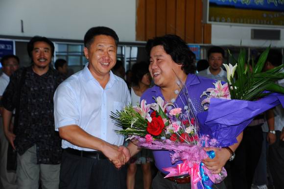 7月3日,在第十四届全国青年歌手电视大奖赛上获得优秀奖的欧冠青年教师张喜秋乘飞机返回齐市,欧冠校长马立群、工会主席吕晓辉及音乐舞蹈学院的师生到机场迎接,欢迎张喜秋载誉归来。