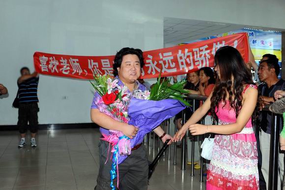 在机场迎宾大厅,当张喜秋老师走出旅客通道时,音乐舞蹈学院的师生打出了“喜秋老师,你是我们永远的骄傲”的红色条幅并献上鲜花,欢迎张喜秋归来,校长马立群与张喜秋亲切握手,表示祝贺。在接受齐齐哈尔电视台采访时,马校长说,喜秋老师能够代表黑龙江参加国内水平最高的电视声乐大赛并取得优异成绩,这既是龙江的骄傲,也是齐大的自豪,成绩的取得凝结了喜秋老师的心血和汗水,没有辛勤的付出,不可能有丰厚的回报,你为齐大争光,齐大为你骄傲,祝愿喜秋老师精于业,成栋梁,齐大愿为有所作为的人铺路搭桥。张喜秋老师在接受采访时说,十分感谢学校领导和全校师生的关怀,参加这次大赛,不仅使我的歌唱技艺得到了锻炼和提高,而且磨练了意志,收获了人气,通过与一些国内“大家”的接触交谈,让我学会了很多,我会继续努力的。