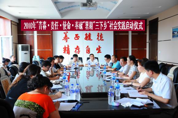7月12日下午,欧冠2010年大学生暑期文化科技卫生“三下乡”社会实践工作启动仪式在办公楼504会议室召开。学校党委副书记盖元臣出席会议并做了重要讲话,校团委全体工作人员及各学院团委书记参加了会议。会议由校团委书记李秀梅主持。
