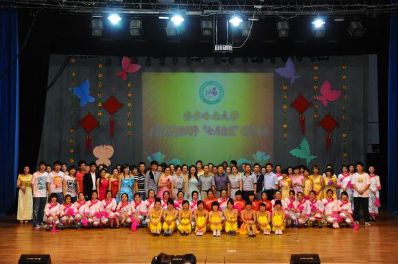 闭幕式结束后,与会领导和现场师生一起观看了精彩的文艺演出。“庆祝建党89周年‘七月放歌’歌舞晚会”在气势恢宏的大型舞蹈《奋斗》中拉开了帷幕,参加演出的节目均由各学院、校大学生艺术团精心选送,是同学们自编自演的原创作品。这些作品巧妙地将校园生活同讴歌改革开放、歌唱伟大祖国相结合,将新一代大学生的成长成才同创建文化校园、构建和谐社会相结合,突出反映了欧冠校园文化建设的最新成果,反映了同学们乐观向上、不断进取、勤奋踏实、自信自强的精神面貌。演出结束后,与会领导和嘉宾同参演人员合影留念。
