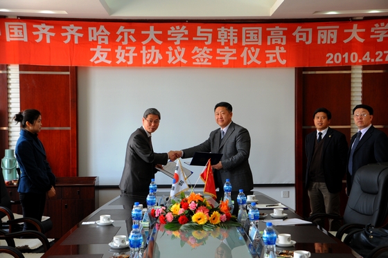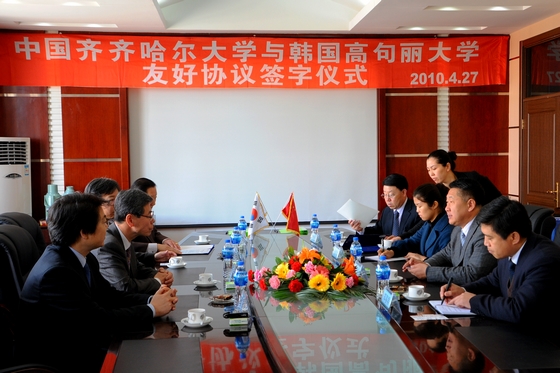 会上,欧冠校长马立群、高句丽大学校长林采圭分别代表双方学校签署了有关合作文本。会后,宾主双方互赠礼物并合影留念。