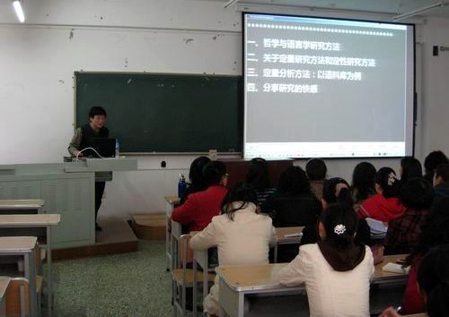 在讲座中,梁茂成教授立足英语教育研究的前沿,回顾了哲学研究与当代语言学研究的传承关系,对其各自的价值与存在的问题进行了分析,并指出了目前我国外语学界教师在教学法研究方面存在的一些问题与不足。梁教授指出,在学术研究中,定性和定量两种研究方法并非孤立存在,泾渭分明,而是相互交融,相互依存的。他同时指出,语言研究如能在研究过程中借助于语料库,则语言研究就变得有据可依了。最后,梁教授为与会师生耐心地讲解与演示了借助语料库进行科学研究的方法与范式。
