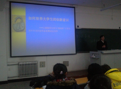 12月5日下午,学校团委特邀计算机与控制学院闫华教授为备战2011年第十二届“挑战杯”竞赛的申请科技制作类科研立项的学生做了题为《小发明、小制作如何问鼎“挑战杯”》的科技讲座。闫华教授向学生们介绍了“挑战杯”竞赛的历史由来及现实意义,鼓励同学们要努力培养创新思维,从点滴做起,逐步实现从小发明、小制作开始到创作出科技含量高、先进性强、实用性强的科技作品。他还采取师生互动形式,现场解答了学生提出的一些疑问。