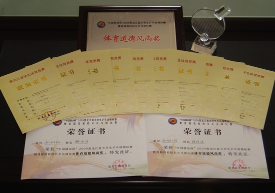 12月25-27日,由黑龙江省教育厅主办、黑龙江省大学生体育协会协办、黑龙江大学承办的“中国移动杯”2009黑龙江省大学生乒乓球锦标赛暨首届高校校长乒乓球比赛在黑龙江大学体育馆胜利闭幕。