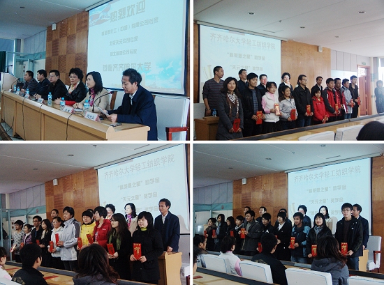 11月初,瑞士科莱恩化工有限公司大中华地区总经理肖月敏、中国区经理李艳,中国皮革及制鞋工业研究院北京天元工贸总公司总经理段力民,河北普昱化工有限公司生产部经理张庆等一行四人来到欧冠轻工纺织学院,为该院学生颁发由三家企业捐资设立的奖助学金。