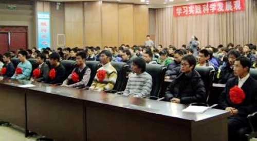 颁奖仪式后,谷闯校友为参加活动的学生作了就业指导讲座。在讲座中,他结合自身就业、创业的人生体验,为同学们分析了就业形势,并指导同学们要树立正确的就业观,调整心态,积极准备,掌握正确的求职方法,根据本人实际,在与用人单位的双向选择中找到自己施展才华的舞台。