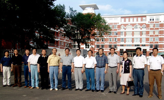 省、市领导一行视察校园结束后,高兴地与校领导在中区校门前合影留念。