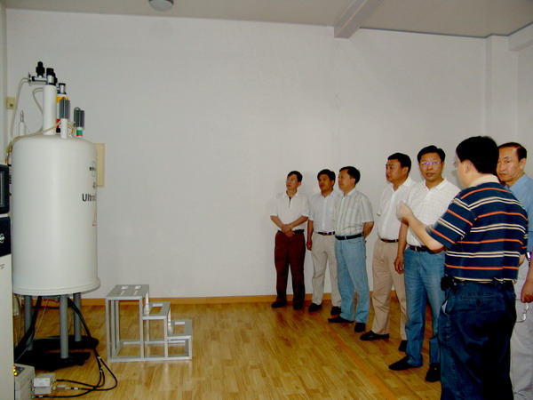 汇报会结束后,省政府、省教育厅领导一行在校领导、市政府有关部门负责人陪同下视察了化学与化学工程学院400兆超导核磁共振、分析测试中心等实验室等。