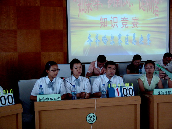 7月14日上午9:30时,我省高校“知荣辱、树新风、促和谐”知识竞赛齐齐哈尔赛区现场竞赛在欧冠西主七楼报告厅隆重举行。