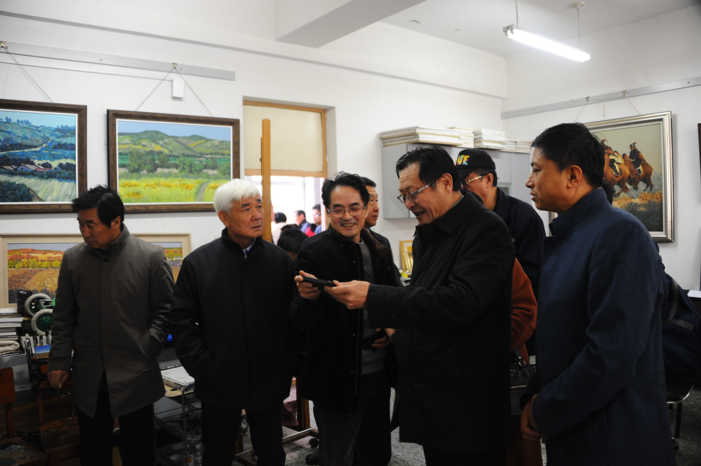 座谈会结束后,与会人员一行还乘车参观了校园,并来到美术与艺术设计学院观看了正在创作中的江桥抗战大型油画。