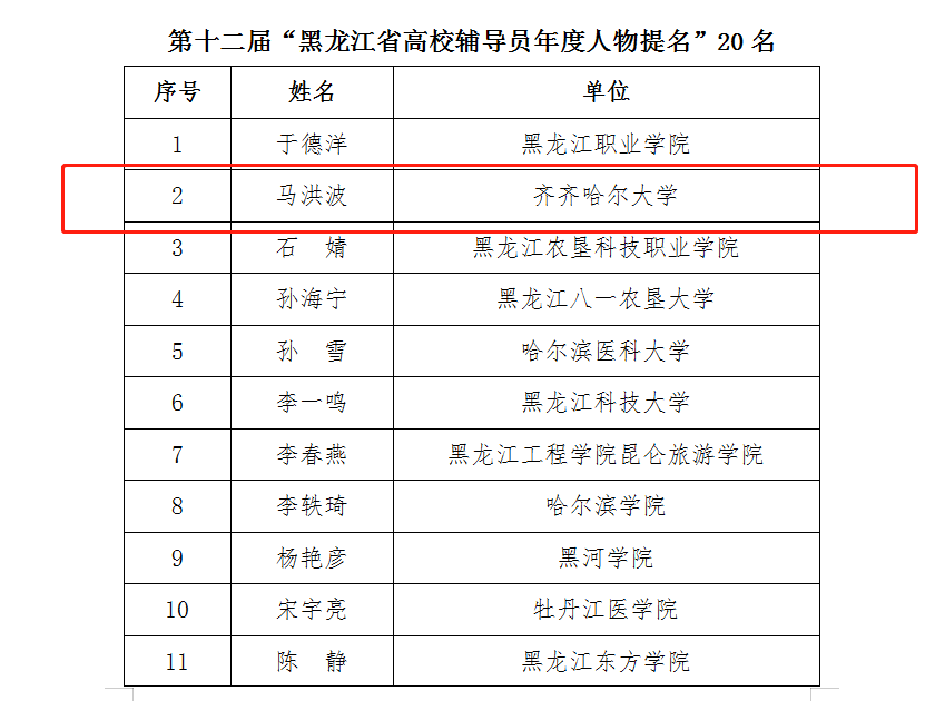 近日,2020年“黑龙江省最美高校辅导员”暨第十二届“黑龙江省高校辅导员年度人物”评审会落下帷幕,经组织推荐、资格审核、专家遴选、网络答辩等程序,全省共评选2020年“黑龙江省最美高校辅导员”10人,第十二届“黑龙江省高校辅导员年度人物”10人,年度人物提名奖20人。欧冠国际教育学院辅导员马洪波获得“2020年黑龙江省高校辅导员年度人物提名奖”荣誉称号。